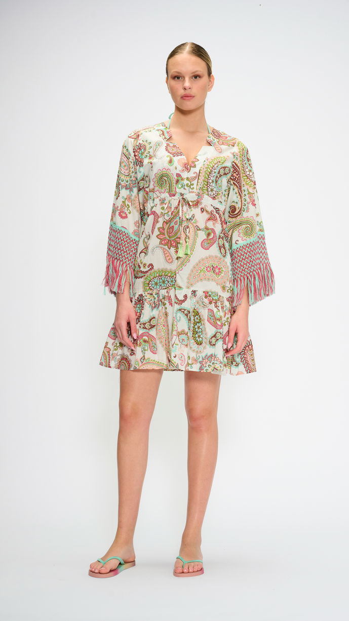 Caftano maniche 3/4 con bottoni e coulisse in vita